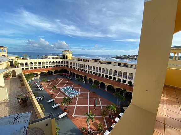 An incredible opportunity to buy a unique property in the resort of Palmas del Mar in Humacao. Fully furnished corner Penthouse Villa with private gated entrance * Assigned parking in underground private access garage and enclosed storage space * Direct elevator access from parking space to the apartment's individual security gate at 4th Floor * Only one neighbor * 3 bedrooms, each with access to balcony/terrace * Vaulted high ceilings * 2 full baths, one ensuite at Master Suite * Fully air conditioned * Washer/dryer combo and fully equipped kitchen * 2 terraces with panoramic views (one in gazebo-tower with 360 degrees view) * Major golf, tennis, and water sport facilities within the Palmas del Mar Resort * Amenities directly in the Condominium: < Spacious central Mediterranean Plaza < Rooftop Pool with ocean view < Various restaurants (including pizza and Chinese food delivery) < Supermarket < Ice cream parlor < Masseuse < ATM * 2,042 sq.ft. of Gross Living Area * It is also a re..
