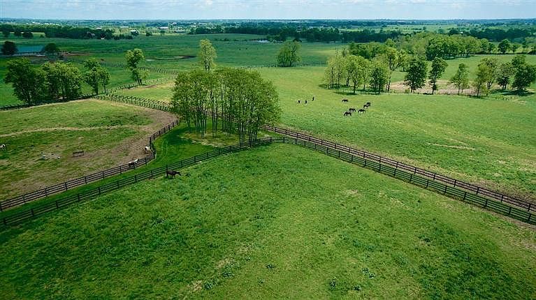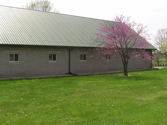 This is a gorgeous gently rolling farm, located off of US 62, just down from Iron Works. The main barn features 59 stalls with open interior courtyard that is set up with a walking ring for showing yearlings. The barn features tongue-in-grove lacquered woodwork, 2 wash stalls, tack room, feed room, and windows in the stalls. There are 5 small paddocks, a round pen, and 5 larger fields surrounding the barn. One field has a nice jogging track. There are the ruins of a brick house circa 1810, a cemetery, and an old tobacco barn. Lovely trees dot the gently rolling pastures. Additional land available.