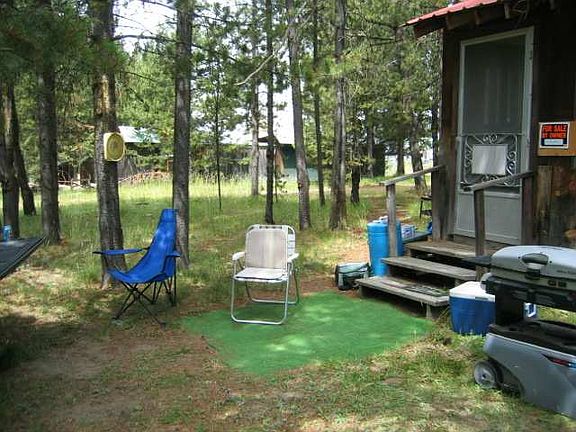 4 City lots (measures together 94’X180’+/-).18’ Camp Trailer,1 bathroom (shower and toilet).7 gallon propane hot water heater. Propane Range, Electric Refrigerator, Included other items(all used) in as is condition. Camper inside metal roof cover w/additional storage each side, living room area w/wood stove and large viewing windows, built on Post ‘n’ Pier – Bat ‘n’ Board sided. 2 Septics – works but origin unknown (has only been putting grey water in septic).Outhouse.Shop/metal roof 10’X18’ +/-.City Water.