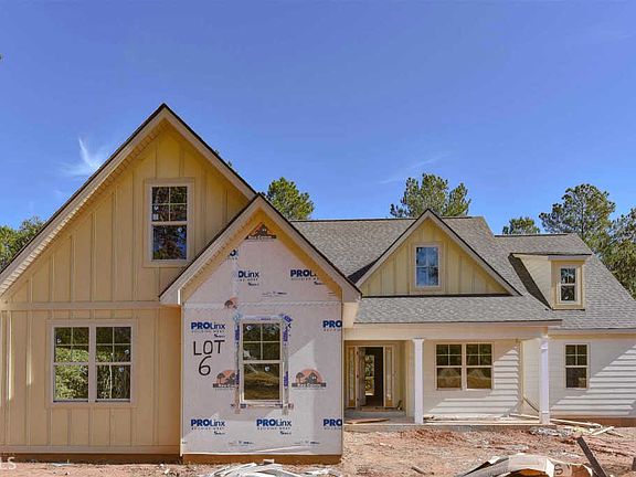 New home on a full unfinished basement with 5 plus acres. Heavily wooded and very private lot. House features concrete fiber board siding, stone and farmhouse accents. Interior has hardwood, tiled floors, tiled shower, granite in Kitchen and Baths, premium all wood construction County Linen cabinets, large open floor plan with covered rear porch overlooking private backyard. Available on first-come, first serve basis. Minutes to I-85 and downtown Newnan and walking distance to Browns Mill Park. Some photos may be comparable properties. Estimated completion could have you moved in before Christmas. Call or text for open house schedule.