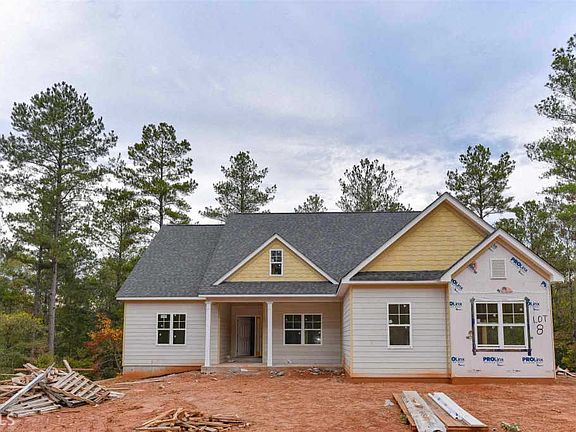Privacy on 5 plus acres heavily wooded lot. New Construction Craftsman style home on full unfinished daylight walk-out basement. Farmhouse and stone accents, granite, hardwoods, open floor plan and over sized master suite with sitting area. 9 ft ceilings with soaring ceilings in the family room and tray ceilings in the master suite. Covered rear deck overlooks the private backyard. Please note that house construction is moving right along and is likely farther along than shown in the photos. Located only minutes away from I-85, with easy access to Newnan, Senoia, Lagrange and Peachtree City. Small private community with only a few buying opportunities available.