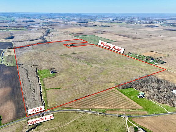 Over 231 acres of contiguous, accessible, gently rolling, prime farmland in the heart of Pickaway County. Continue agricultural operations, divide residential building lots from the tremendous 3,550+ feet of frontage along Poling Road, or BOTH. The unique round barn (in need of some repair) is accessed from the Hayesville Road frontage at the NE corner and enhances the panoramic vistas across these beautiful fields. Boundaries displayed on photos are approximate. New 2024 survey and legal descriptions available. See A2A.
