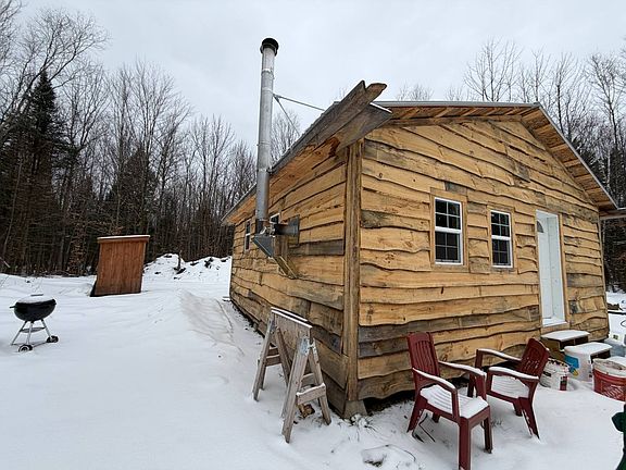 Set in a quiet and secluded North Country setting, this 92.45± acre recreational timberland property in Franklin County, New York offers an exceptional opportunity for hunters, outdoor enthusiasts, and those seeking a private getaway. Adding to its appeal, the property is located just over a half mile from the Saint Regis River State Forest, providing access to thousands of additional acres of public land for recreation and exploration. The landscape features a diverse mix of hardwood and softwood timber, creating excellent wildlife habitat and long-term value. Approximately 6± acres of the property consist of wetlands, enhancing biodiversity and attracting a wide range of wildlife. A deck overlooking a section of the wetland provides a peaceful place to relax, observe wildlife, or enjoy the natural surroundings. A brook runs through the property, further contributing to its scenic beauty and recreational appeal. An established access road provides easy entry to the property and leads to two off-grid cabins, making this a great recreational retreat. The larger cabin, constructed in 2024, offers 576 square feet of living space and was built using wood harvested directly from the property, showcasing craftsmanship and a sustainable connection to the land. The second cabin provides additional space for guests, storage, or flexible use. This property offers excellent hunting opportunities for deer, turkey, and bear, with proven habitat created by the combination of timber, wetland edges, and water features. The surrounding area is known for strong wildlife populations, and the nearby state forest further expands hunting and recreational possibilities. Extremely quiet and private, this property is ideal for camping, hunting, or a seasonal retreat. Whether you're looking for a family camp, an off-grid escape, or a long-term recreational investment, this Franklin County property delivers privacy, natural beauty, and access to both private and public land-an increasingly rare combination in today's market.