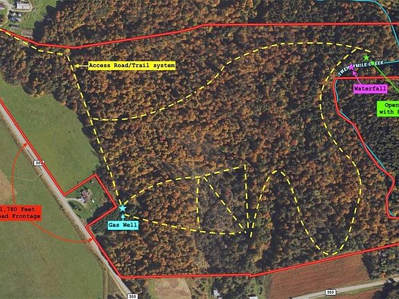 - Features: Irregular Lot, Rural Lot, Wooded, Rolling Slope, Stream/Creek