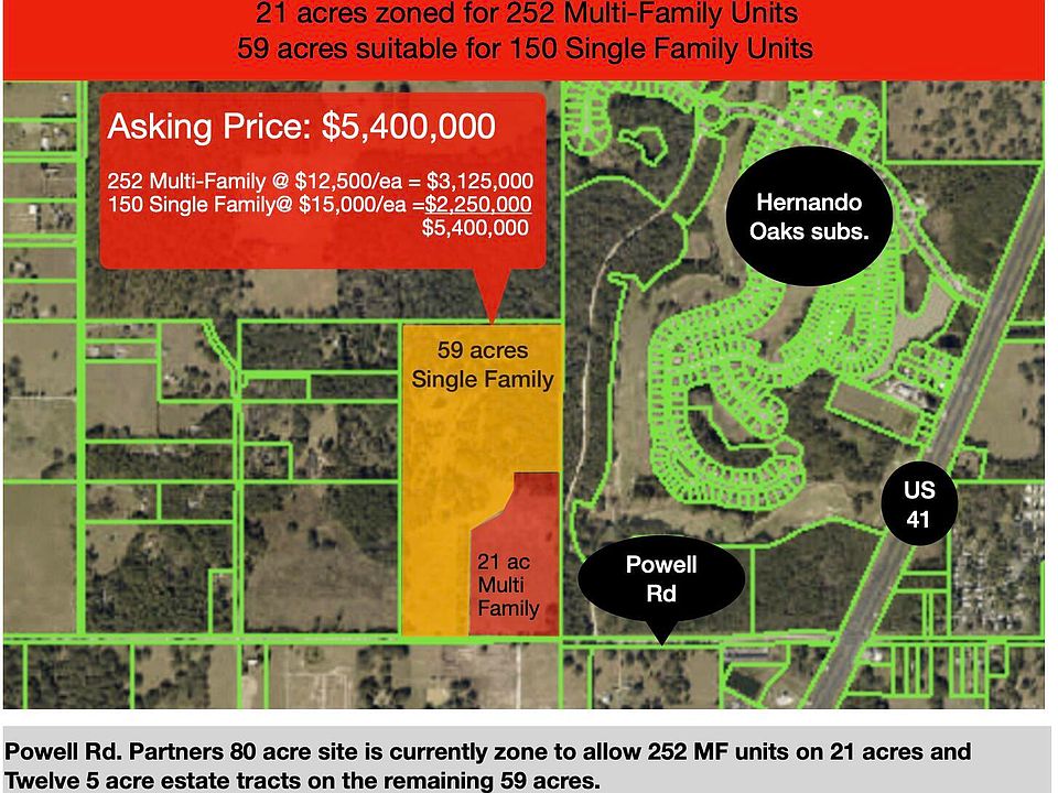 Powell Rd. Partners 80 acre site is currently zone to allow 252 MF units on 21 acres and