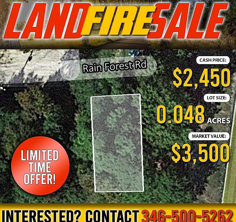 30% Below Value Impala Wood 0.048ac Lot Sale ~~ Contact Miles Dumas to learn more: 346-500-5262 - land@southernoaksmgt.com ~~ WHY BUY?: #1. Level lot, minutes away from state parks and water activities! #2. Easy access to the private Subdivision pool and boat ramp! #3. This lot is available for a steal at $2,450 cash! Multiple Purchase Options Available! COMMUNITY DETAILS: This is the perfect place to build a getaway and enjoy a day under the sun on water or land! The Impala Wood community offers its residents lake access, a pavilion and playground on top of the private boat ramp and pool. Even though the town of Onalaska is small, the city is filled with lots of friendly faces. And with Huntsville about 30 minutes away as well as Houston and Beaumont being about 1.5 hours from the lot, you’ll always have something to do! It’s truly a great space to retire! USAGE DETAILS: - Single Family Home - Trailer/MotorHome - Tiny Home - RV’s *can NOT live in travel trailers - Camping *can NOT live in travel trailers PROPERTY DETAILS: - Lot Type - Land - Sale Price - $2,450 - State - Texas - County - Polk - Assessor's Parcel Number - I0300111700 - Property Usage - Single Family, Tiny, Trailer/Motor Home & Recreational uses - Property Address - 0 Rain Forest Rd, Lot #: 14, Onalaska, TX 77360 - Association Community & Contact - Impala Wood, impalawoodslakelivingston.com - Size - 0.0482 Acre(s) - Road Access - Yes, Paved - Electricity - At the Street - Water - City Connections - Sewer - Public / County connections ACCESS DETAILS: - Rain Forest Rd is a paved road - Lot GPS Coordinates: 30.802957, -95.101908 - 612 Rain Forest Rd is the address to the neighbors house, which is a home near the property/ POPULAR ATTRACTIONS: - Lake Livingston, 16 minutes away - The lake is a central hub for recreations like white bass fishing, swimming, boating and more! - Sam Houston National Forest, 25 minutes away - This paradise of outdoor recreations features hiking trails, hunting grounds, camp and wildlife areas as well as many other activities. - Lake Livingston State Park, 28 minutes away - The park offers camping, hiking destinations with horseback riding, a pool and don’t forget all the lush natural beauty! - Texas Prison Museum, 43 minutes away - Such Fascinating exhibits of Texas history which focuses on following several famous Texas criminals. PURCHASE OPTIONS: This versatile land can be yours for only $2,450, that's 30% below value! Other payment options available. GOT QUESTIONS? WE HAVE ANSWERS!: - Call/Txt/Email Miles Dumas @ 346-500-5262, land@southernoaksmgt.com. - We may have other properties at bargain prices available. All you have to do is ask! - Don’t hesitate! Connect with us today while this deal is still Available! DISCLAIMER: Buyer must verify & work with County to know what can & can't be done with the land, obtain proper permits if needed & confirm the availability of any utilities needed/serviced on the lots. Seller makes no warranties or representations about the land, its condition, or what can be built on the parcel.