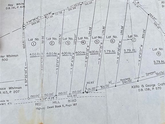 Beautiful 8+/- acres on Red Hill Road. Includes Lot 4 & Lot 5. Great for hunting. Has road front access. Electric & water nearby. There is a 30 foot easement that goes across each lot to the back lot.
