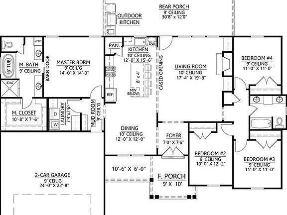 Thirdly, outside living space has a little something extra with the outdoor kitchen. The covered rear porch is generous in size, measuring 30'8 wide by 12' deep. Deck it out with seating or a huge farmhouse table so you can dine outside. Make hamburgers and hotdogs at the outdoor kitchen, and be sure to keep the refrigerator stocked with lemonade and sweet tea. This is where you make the best memories with your family.