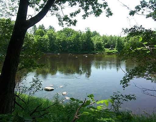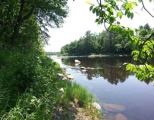 R.V. Special! This beautiful level wooded waterfront lot is sure to please all who like peace & quiet while watching & listening to nature at its best. Fish, swim & canoe scenic Sandy River which is now a waterway for Atlantic Salmon. Catch trout also!