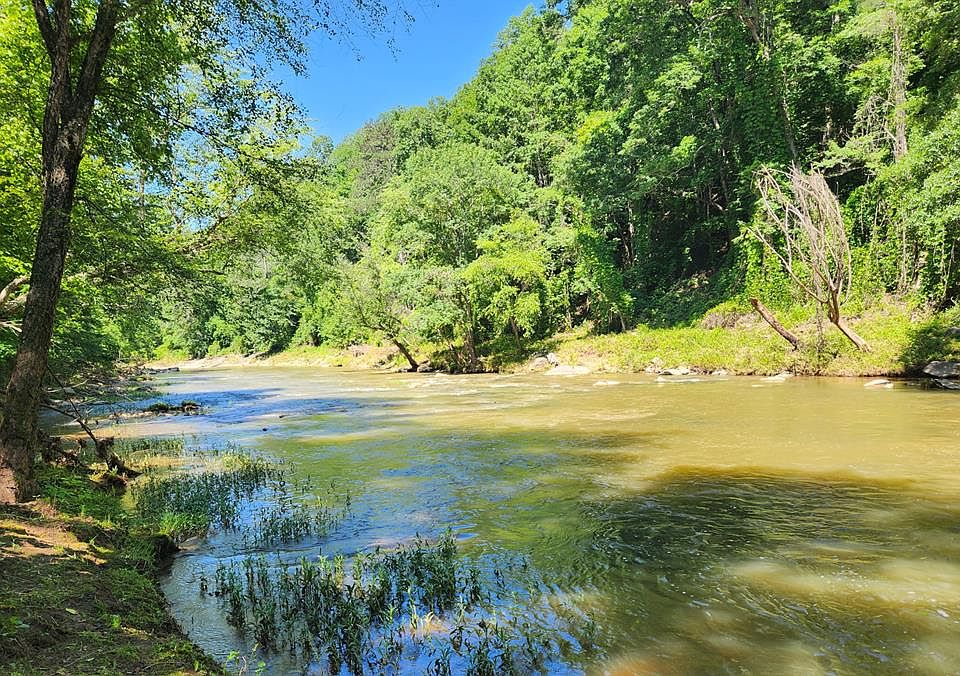 Beautiful hardwood covered lot sloping down to 300' of Talking Rock Creek frontage. Power, phone and county water. S/D features pool, tennis, playground, fishing lake and miles of frontage on Talking Rock Creek. One rec area across from turn onto River Top Road. Seclusion and the quiet of the woods abounds Easy to get to, but hard to find.