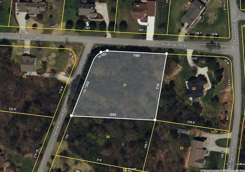 Beautiful, wooded lot in Riversound subdivision. Perfect basement lot on the corner of Riversound and Channel Pointe. Adjacent property (MLS 1358027) is also available.