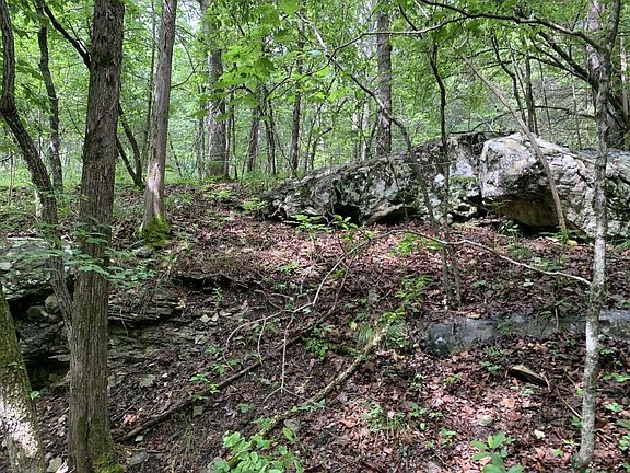 There are only a few larger tracts of land down Talking Rocks Road. This property is located next to a larger development and has 1500 feet of access on county road, which makes this property ideal for a platted development, or large estate. No recorded restrictions could be found, but buyers should check with the county to confirm this status. There is several hundred feet of road access on this three (3) tract parcel. There is good signage on Rock Ridge Road to indicate property location. This parcel is located close to Table Rock Lake, Branson West and other Branson area attractions. The upper elevation suggest some lakeview will be possible when trees are removed. The many rock formations and rolling terrain offer perfect and natural landscaping.