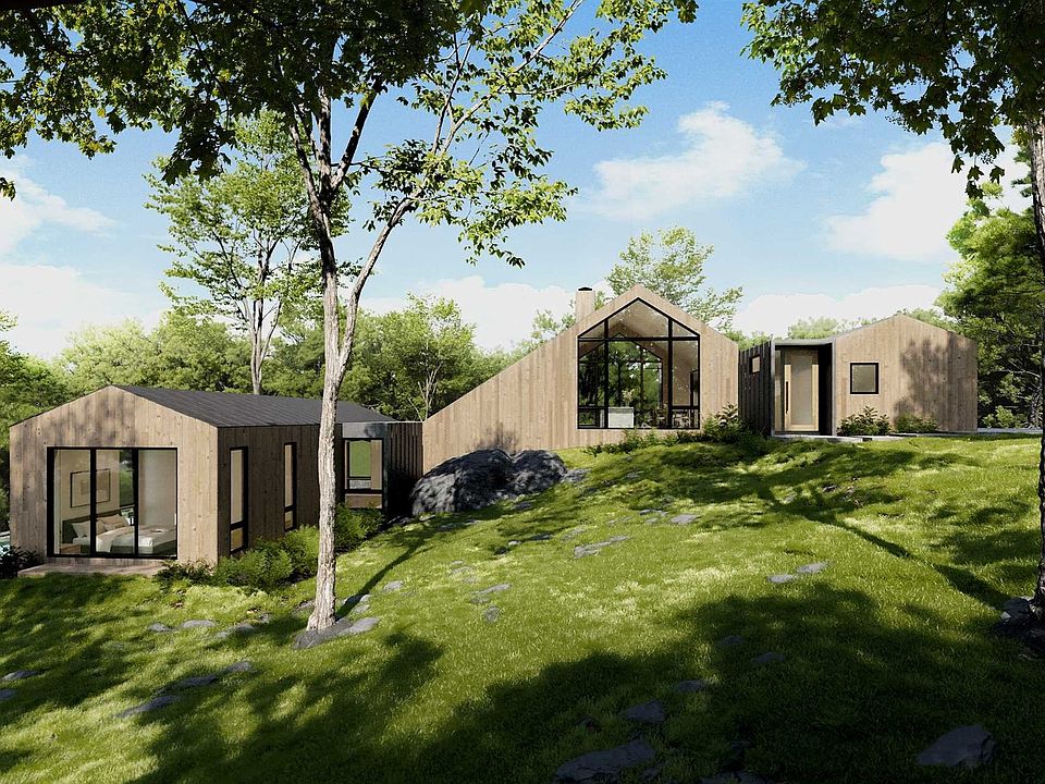 Forest Ridge. Sited on a subtle ridge line the form of the residence draws inspiration from an Alpine chalet with rustic elements in a distinctly modernist form. Three iconic gabled pavilions comprise the home - a private residence volume and separate guest suite and wellness wing both connecting at a two story central living pavilion with dramatic glass end walls, open floor plan kitchen, dining, living and media room. 4 bedroom, 4 bath, 2 half bath, and approximately 4,040 finished SQFT with attached garage. An incredibly private, quiet and secluded property minutes from the villages of Rhinebeck and Red Hook, Forest Ridge has been designed with a new paradigm of residential architecture, centering on wellness, remote work, guest accommodation and flexible use spaces, for a re-imagined modern lifestyle. Architecture by S3 Architecture with interiors by acclaimed hospitality designer Kristen Cochran Design, the residence boasts tastefully modern finishes for your private rural retreat. The dramatic living pavilion showcases an entertaining kitchen including Miele column refrigeration, two freezers, additional beverage refrigerator drawer, convection oven and speed oven. The primary bedroom suite offers a zen respite with cedar clad and textural accent walls along with radiant heat flooring fit for spa living. Included is a 12'x30' gunite heated saltwater pool, with black locust decking, railing and firepit patio. Smart home technology is integrated throughout with smart switching, thermostats, HVAC and appliances. The property is a mostly wooded 21 acres with mature trees and park-like setting including interesting terrain, dramatic rock outcroppings, and vernal pools ideal for on property hiking and natural recreation. Features include hardwood floors, designer finishes, wood burning fireplace, Danish cabinetry, Miele appliances, high efficiency geothermal HVAC and included backup generator to power the residence. Includes septic, private water well, underground utilities and driveway. Upgrade options include separate studio, greenhouse and gardens.