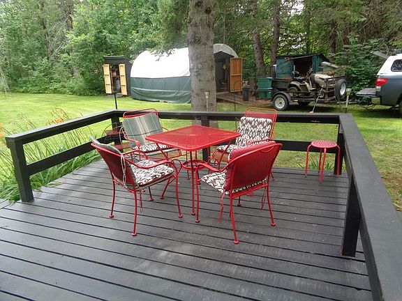 Oasis in the woods! This camp is a relaxing getaway for all that have a busy life and want to just relax. This camp offers a large deck and porch area to enjoy the summer barbecue and campfire chats. One bedroom, kitchen, shower and gathering room with the amenities of power and a well. The lot is 1.5 acres with 165 feet of road frontage and comes with a Quonset hut and several out buildings for all your recreational toys. If your interested in hunting it is a great location for deer and turkey hunting. Raspberry bushed, apple trees and natures wildlife await you for your vacation retreat.