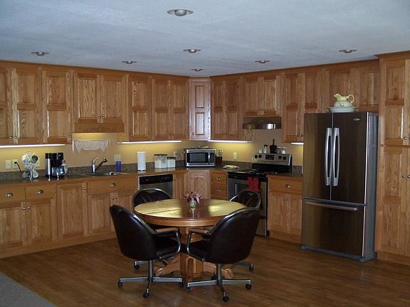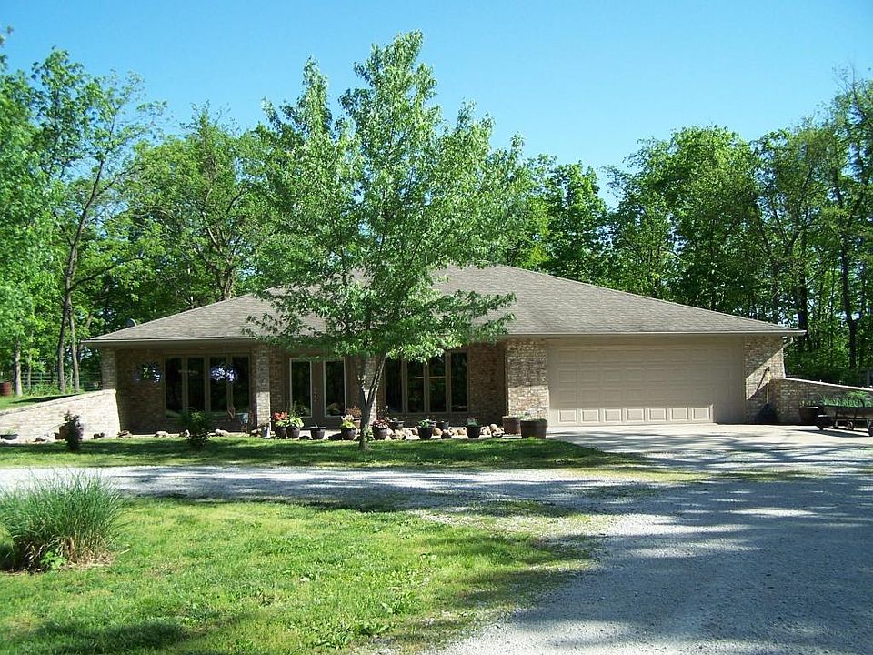 This home has it all! Beautiful open floor plan with tray ceilings in the living area and bedrooms. Lots of oak cabinets and newer appliances in the kitchen. Two bedrooms,2 bath,all on one level and handicap accessible, attached garage and nice large shop area with the pressure tank, furnace, water heater and softener that has heat and air. Beautiful landscaping with raised garden beds and a panoramic view of the valley and hillside. 23.5 acres of partially open land and timber all fenced with one pond. You need to see this to appreciate all of the amenities. Most of the better quality furniture will stay at this price!