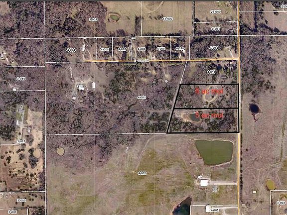 Welcome to the country, close to town! 10 acres more or less that can also be purchased as two, 5 acres tracts. No restrictions. Can choose your builder. There are two 5 acre tracts or buy both tracts together for a total of 10 acres. Huge stocked pond, tons of trees and wildlife, but also some clearings for possible home sites. Ariel map image is only an estimate of lot lines and is not a survey.