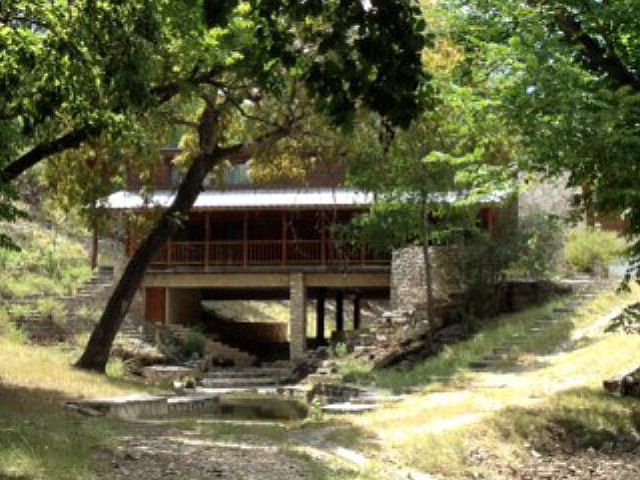 Live close to nature:8+AC carved from lg ranch/amazing opportunity awaits new owner of this beautiful property perched above a spring-fed pond.PRIVATE SANCTUARY Nestled in a canyon w/amazing views-3/2 home is distinct in character. Varied types of hand milled hardwoods inc cedar, wild cherry & mesquite are used.Great Room w/rich dark rock fireplace is interior focal point w/3 sets of patio doors leading to expansive covered porch overlooking pond/creek meandering through this property- outcrops of rugged rock,bluffs, beautiful hardwoods & canyons.Also, CHEF'S DELIGHT KITCHEN & lots of storage.