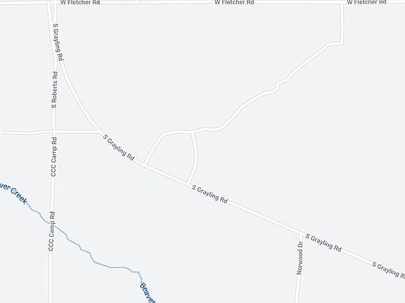 Beautiful acreage not too far from Higgins Lake. This 12.16-acre wooded lot has two sections that have been cleared out, perfect to start building your dream home, use it as a hunting property, or use it as a recreational camping site with a valid Township Camping Permit from Beaver Creek Township. It also has a low area with water that could be turned into a beautiful pond. The property is located just south of Fletcher Rd and directly across from S Roberts Rd.
