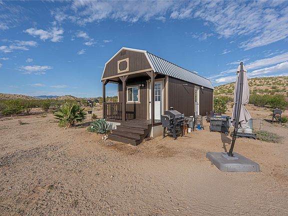 Own 40 acres in Kingman, AZ with endless possibilities! This property includes two 384 sq. ft. mini homes-one fully finished with a stylish kitchen, modern bath, cozy living area, loft, and R13 fiberglass insulation, fresh paint, new carpet with waterproof padding, built-in bookshelves, pantry cabinet, upgraded energy-efficient windows, an on-demand digital tankless water heater, and smart-device controls for convenience. The second mini home features a completed bedroom, air conditioning unit & storage area ready for your finishing touches. The property is set up for self-sufficient living with owned solar power and battery backup, a large water storage tank, and energy-efficient mini-split heating/cooling. The main home offers a contemporary kitchen with a custom-made stainless steel farmhouse sink, new gas cooktop, and tile accents. Outside, you'll find a whole additional lot already cleared with its own driveway, plus a greenhouse or chicken coop by the main mini homes-perfect for gardening, homesteading, or raising animals. Both mini homes feature covered porches and fresh exterior paint, creating a welcoming look to go along with the sweeping desert and mountain views. A rare opportunity to live off-grid, create a family retreat, or expand into your dream homestead all within an easy drive to Kingman.