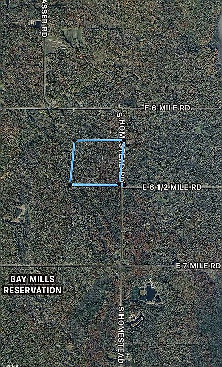 Discover this beautiful 40-acre parcel located directly across from Finn Hall, offering privacy, accessibility, and opportunity. The property features a southeast corner entrance with a winding entrance trail stretching approximately 1,200 feet, wide enough for vehicle access, guiding you into the property and opening up to a cleared area tucked deeper within the land.