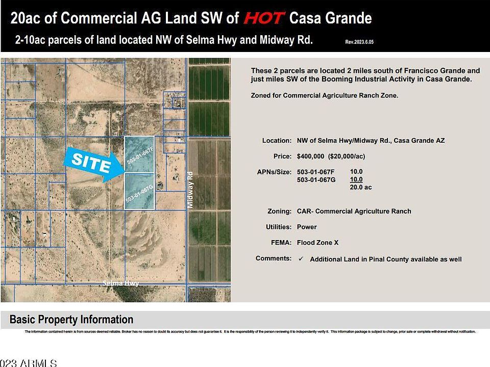 Fantastic opportunity to own acreage in Casa Grande. Just West of Midway Rd. Close proximity to I-8 and the Selma Hwy.