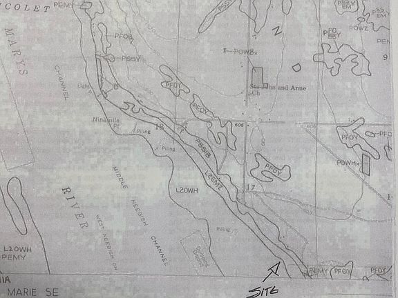 2.3 wooded acres with 125ft of waterfront on Lake Nicolet ( St Mary's River ) Corps of Engineers report on file as well as survey. Property could make a nice RV or building site. Good fishing out front and along River. Views to the West offer sunsets and passing lake freighters. Property is located on Sugar Island, just a 5 minute ferry ride out of Sault Mi. Sugar Island has year round ferry service. Sugar Island is a quiet retreat and offers a laid back lifestyle.