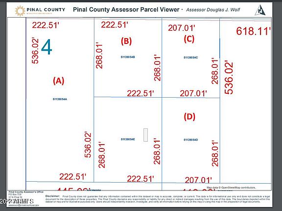 4 spacious acre++ split lots sold together in fast growing Casa Grande! Listing includes parcel numbers 511-39-054 A, (2.738ac) B (1.369ac) C (1.274ac) & D (1.274ac) for a total of 6.65 acres! Lots can have a mobile or site built home. Horses are welcome too! Just a short drive to I-10 & I-8, shopping, restaurants, the Arizona Polo Club, Lucid Motors, and more! Pinal county parcel view, SPDS, and tax statements with legal descriptions and 2021 tax amounts for each lot are attached in the documents tab. **Seller may carry with 50% down** Please contact co-lister with any questions. Buyer to verify schools, zoning/use, utilities, buildability, and all pertinent information.