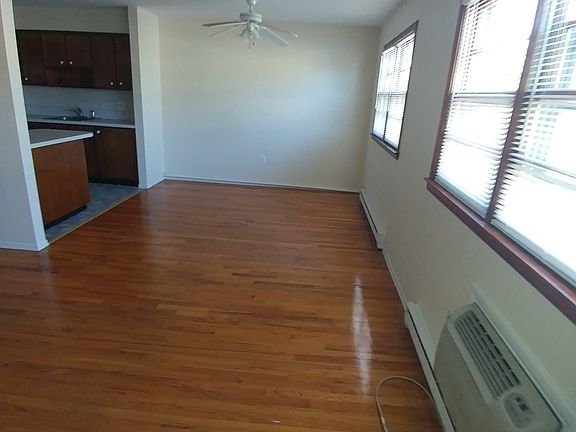Spacious and bright 2 bedroom apartment with eat in kitchen, dining room, living room and hardwood floors. Laundry in building and parking for 1 car NO PETS