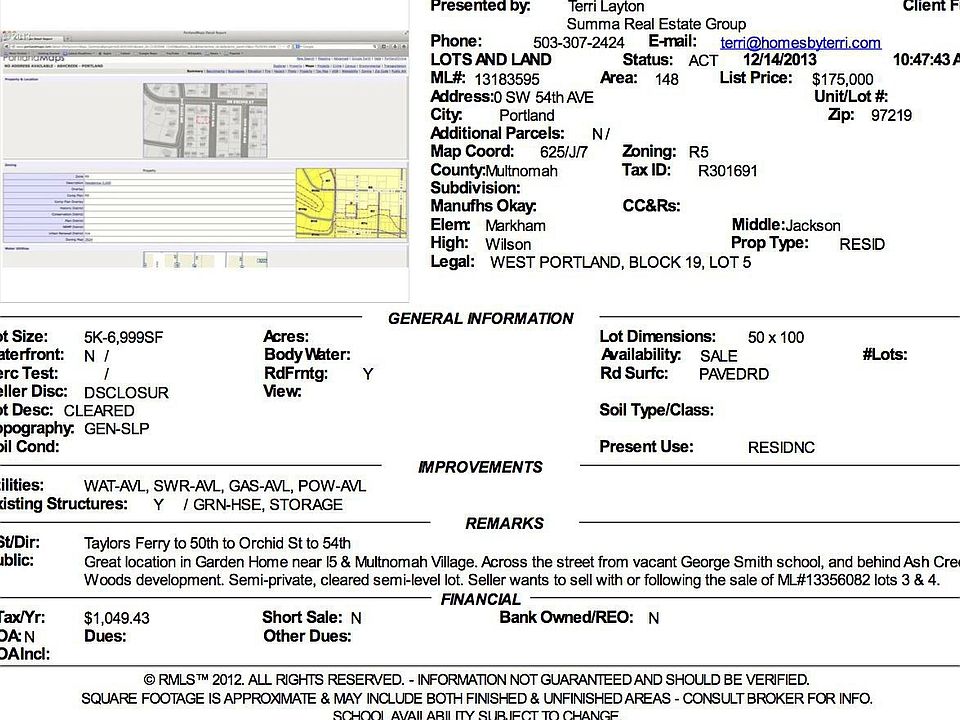 Great location in Garden Home near I5 & Multnomah Village. Across the street from vacant school and just behind Ash Creek development. Semi-private, clear semi-level lot. Seller wants to sell with lots 3 & 4 ML # 13356082
