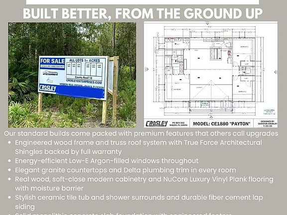 Together with Crosley Construction, we offer this to be built new construction. Featuring 4 bedrooms 3 bath and two master suites! This plan is customizable or can be swapped out for the plan that works best for you. To be built on this beautiful 6.63-Acre Homesite | Zoned RFS-1 | Paved Road Frontage | Modular or Site-Built Homes Allowed. Discover the perfect balance of nature and convenience with this partially cleared 6.63-acre parcel, nestled just outside the heart of town! Property Highlights: 6.63 acres of high-and-dry land beautifully wooded with a cleared homesite already in place. New culvert installed for easy, direct access from the paved road. Located less than 1/4 mile from the bypass - ideal for quick commutes to Palatka, Green Cove, and beyond. Additional 5.98 acres available next door for more space or future expansion. Peaceful rural setting, yet convenient to town, schools, and shopping. This is the kind of property that doesn't come around often - privacy, location, and potential all in one. Schedule your tour today and come walk this beautiful land for yourself!