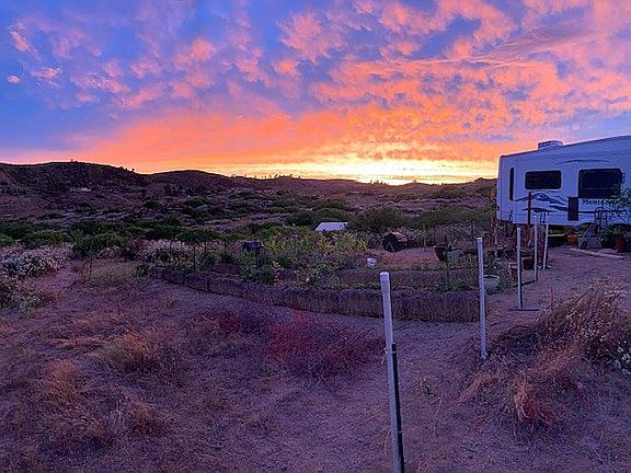 Southern California Acreage !! Secluded with easy access. Nearly 17 acres of sub-dividable view property with county road access on two sides. Good for commercial farming/ranch/homestead or creating 3 lots (see plot map). Currently planted (irrigation system installed) with 1-acre of native Elderberries (Mexican Sambucus). Located 5 miles east of popular Temecula Valley Wine Country at the intersection of Sage x Stanley Rd. AWESOME location, great well area, electric at property line, near perfect weather. Travel trailer with 4 slide-outs available. Sale price of $289k. Financing available.