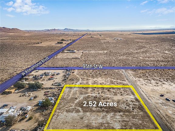 Great opportunity to own 2.52 acres of Residential vacant land in the growing city of Rosamond! Located just north of existing residential neighborhoods, this flat and usable parcel (APN #374-042-10-00-1) offers excellent potential for future development of a custom home, or bring in your Mobil/Manufactured home, or for investment. Zoned E(2½) R, allowing for residential use with a minimum lot size of 2.5 acres, this property provides the perfect blend of space and rural charm while still being close to local amenities, schools, and freeway access. Whether you're looking to build your dream home or hold for future growth, this is a prime piece of land in an expanding area of Kern County. Buyer to verify all zoning, land use, and utility availability with the county.