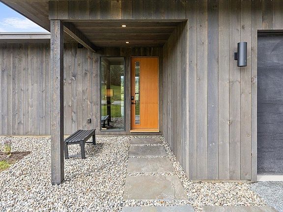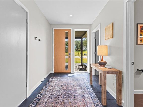 Moscow Meadows the latest build package option from Gristmill Builders, known for their attention to detail, eco-friendly building, and luxury finish work. Sitting on the gateway to Stowe, Moscow Meadows offers beautiful mountain and river views, a prime location surrounded by conserved open meadows, and the ease of a new high-end home. This exciting new development will offer hand-crafted homes in a tranquil neighborhood setting. The modern design features an open concept main floor, highlighting the mountain views towards Stowe Mt. Resort. The living room comes complete with a gas-burning fireplace, while the center island in the kitchen makes for a perfect gathering space. The primary suite is conveniently located on the main floor, perfect for single-level living. White oak flooring throughout this level brightens the space as much as the large and plentiful windows. The walk-out lower level is an ideal space for guests to spread out. Taking advantage of the views, this level features one en-suite bedroom, a guest bedroom, an entertainment space, and a shared bath. The lower level features troweled concrete floors, adding to the home's modern feel. Touches of Vermont synergized with modern flare create a unique Stowe home. Photos are of lot 4 and differ from plans for lot 3. Kitchen for lot 3 will be located in the dining area seen in photos, wood stove is an upgrade. Lot 3 includes a screened porch. See specs and finishes data sheets for details. Construction will vary.