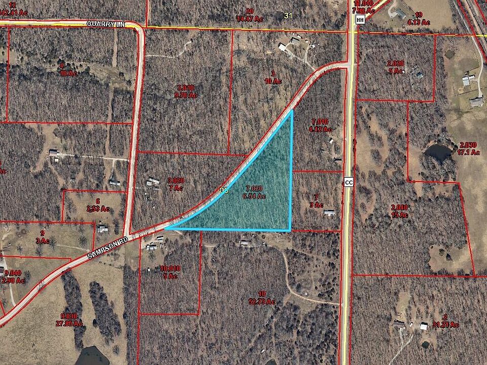 Perfect piece of land to build your dream home on. Could be divided into two parcels. Just off of Hwy CC on Sampson Rd. Almost 1/4 mile of county road frontage on the front of the property. Buyers and Buyers agent to do Due diligence on acreage.