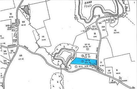 #2827 - Beautiful wooded home site seconds from public beach on Sand Pond. 9.04 ac. surveyed lot with frontage on Robinson Pond for wildlife watching at its best. Many choice private locations for your home or getaway. Land of this quality is hard to find