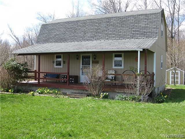 Tranquil, secluded cabin on 8+acres include large stocked pond, 6 acres of woods and trails, great hunting & fishing spot. Enjoy nature and fantastic sunsets from front porch. Insulated cabin with wood stove is over 1400 sq ft with 3 bedrooms up. Most furnishings, paddle boat & lawn tractor included in sale. Possible owner hold. Property is approx. 1300 ft back from main road. Electricity is supplied by a gasoline generator.