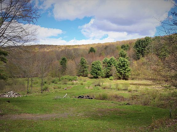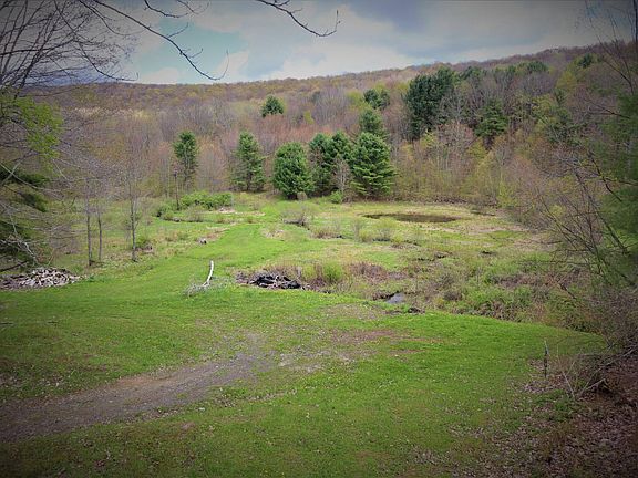 Retreat to your cabin on a private road near Little Valley. This property is tucked away on a hill over looking a meadow and a pond. This property has the off grid feeling and privacy so many are looking for, but has the conveniences of location, electricity and water service already added. The owner has built this cabin to 80% completion, requiring only a septic service, bathroom, siding and finish the inside to your liking if you want it fully finished. As it sits it is an awesome and extremely well built hunting or recreational building for a more rustic experience for your hunting crew or family. The cabin has a fully poured cement floor with a 24 inch raised apron so no water damage would ever occur. The studs are true 2 x 6 lumber with plywood walls, not tentest or OSB for extra strength and longevity. The entire cabin is already wired with electricity and an ADT security system has been installed with cameras for peace of mind when you are away. An open concept first floor would allow for adding your own kitchen design, and to take advantage of the raised ceiling height for a roomy and airy décor. A wood stove warms your bones in the fall and winter, while being located on the hill top summer breezes keeps you cool and comfortable. A loft bedroom has its own walk out balcony to enjoy the view and sip a coffee in the morning over looking the pond. A covered porch stretches along the front of the cabin, and there is a covered side porch. The side porch would be ideal for expansion in the future. Enjoy bonfires on the hill, or walks around the pond on groomed trails. Close to Buffalo, Salamanca, and Little valley this get away property is priced well to sell! - Quiet Cabin living - Great view - Private road - Pond - Creek - Trail system - Well - Electricity - Wood stove - Walk out loft deck - ADT Alarm System - Deer Hunting - .4 miles SW of Bucktooth State Forest - 4.7 miles east of East Randolph, NY - 7.9 miles west of Salamanca, NY - 8.4 miles SW of Little Valley, NY - GMO's to convey - Taxes $1,100