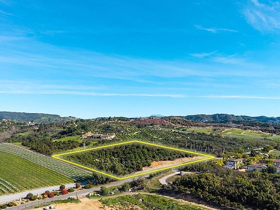 Discovery a rare chance to own 4.5 acres of beautiful land in the highly desired De Luz neighborhood of South Temecula. Set among luxury multi-million dollar estates, groves and vineyards, this peaceful property features a gentle sloped lot with sweeping views and an avocado grove. Located on a paved street at the end of a cul-de-sac, it's an ideal setting for privacy, tranquility and offers the perfect balance of exclusively and convenience. Utilities are at the street making development that much easier. Approximately 8.9 miles from the heart of Old Town Temecula, Interstate 15 and major shopping. Build your dream estate.