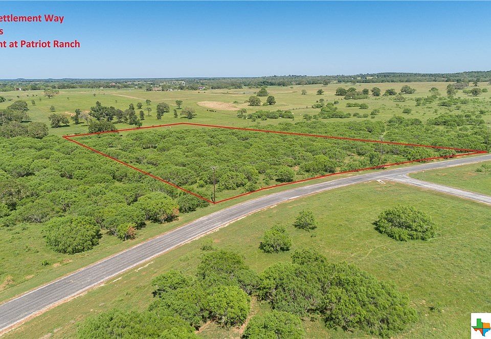 There is truly something special about the Settlement at Patriot Ranch. Located within commuting distance to Austin, San Antonio, Seguin, San Marcos, Gonzales, and everywhere in between, the Settlement defines sophisticated country living while sneaking away from the hustle and bustle of life. Now is your chance to build your dream home on one of the large acreage lots found in Unit One of this subdivision. Neighboring 10.59 acre lot also available. Pick one...or choose both! Homeowners will enjoy over 1,200 acres of drive-able views to enjoy the domestic and exotic wildlife views and take your breath away sunsets! Property carries AG Exemption for low property taxes. HOA restrictions allow site-built homes with a minimum 1,800 sq ft living space that features a masonry exterior (no time limit to build). Metal barns/shops are ok after the main house is built. No manufactured/mobile homes or barndominiums.