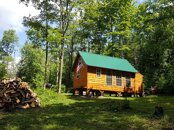 Off grid open layout cabin with 14 ft ceilings, loft bedroom . 11.3 beautiful acres... hardwoods, pines , and small brook splits the parcel . Cabin runs off remote generator . 100 yard shooting lane cleared , finished driveway , storage shed and generator house . Little piece of heaven for any outdoor enthusiast ! 518 774 9653