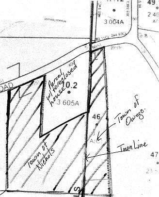-BEAUTIFUL RURAL ACERAGE FOR SALE. MOSTLY WOODED WITH ACCESS. LOCATED AT SIBLEY ROAD toward Sulpher Springs end.- GOOD LOCATION, 260+ FEET ROAD FRONTAGE. PERFECT PRIVATE BUILDING LOT. TAXES TBD. PROPERTY HORSESHOES AROUND HOUSE WITH FALLEN DECK. DOES NOT INCLUDE AND IS NOT RELATED TO GREEN HOUSE. PROPERTY IN TOWNS OF OWEGO & NICHOLS.
