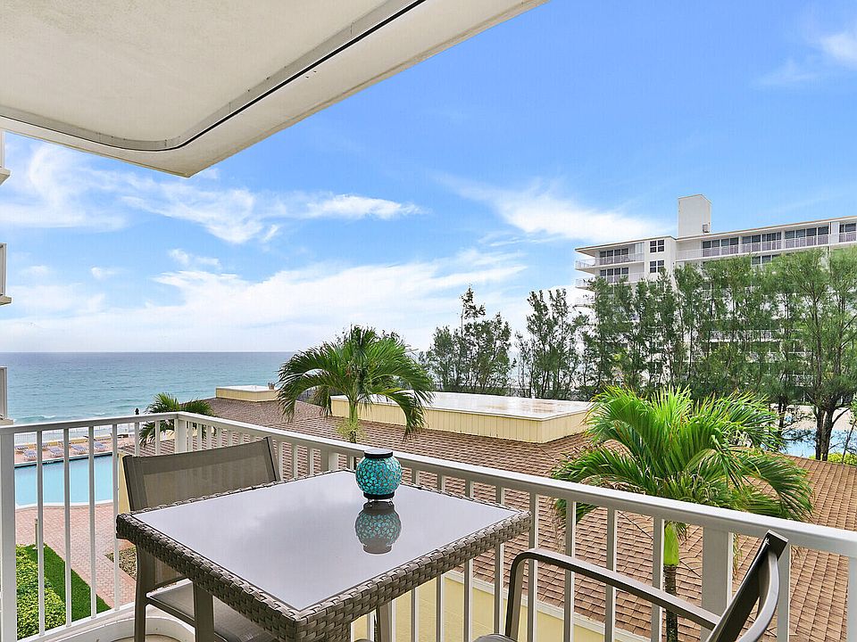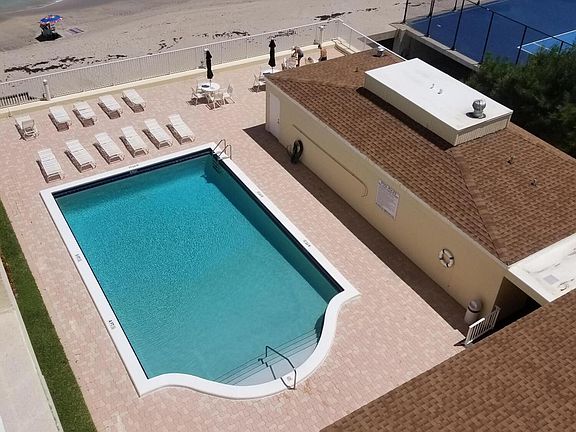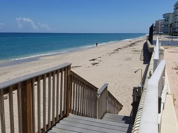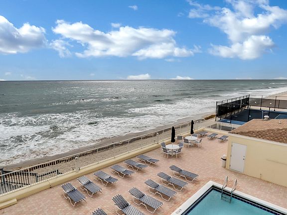 Delightful BRIGHT and UPDATED 2BR/2BA condo in DIRECT BEACHFRONT complex with desirable southeast ocean views from every room. Newer kitchen and baths, tile throughout entire unit, freshly painted, new AC system, TURNKEY UNIT comes completely furnished and READY TO ROLL ! Just bring a suitcase and toothbrush!Live here now and rent out AS IS in one year! NOTHING TO DO! NO repairs necessary, one lease per year flexible terms. Condo fee of $836.00 included contribution to reserves, pest control, COMCAST CABLE, water, HOT WATER, one garage space...second car outdoors. Full time on-site property manager, clubhouse, heated fresh water pool. GORGEOUS oceanfront spot on the beach. Three minutes to new PUBLIX