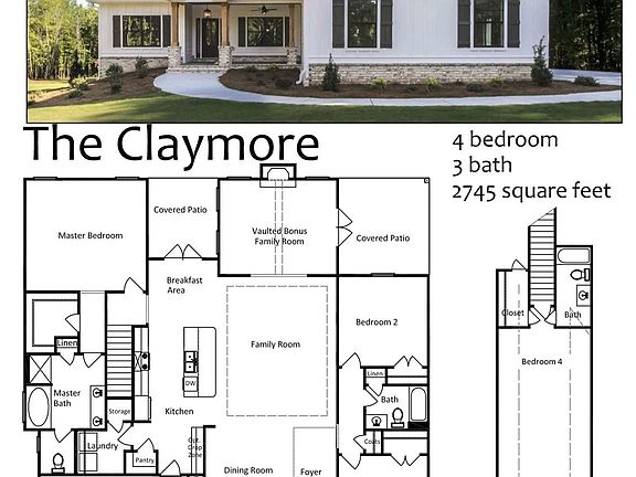 Trademark's best selling plan is BETTER with an expanded living space!! Spaces in the Claymore are so practical and perfectly planned Foyer welcomes guests and immediately opens up to the formal Dining Room, family room and kitchen. An eat kitchen has a large island with prep space galore. A split bedroom plan means privacy for the owners suite (with walk in closet , en suite bath and double vanities). Two additional bedrooms share a bath. Upstairs is a bonus/teen suite with a full bath. A keeping room is great flex space for a media room, play room etc. Two porches (a covered and a grilling porch) make for great outdoor entertaining spaces! Expected completion is July 2021