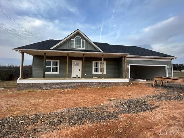 Awesome new construction with beautiful mountain views! About 15 minute drive to Lynchburg, Appomattox or Rustburg. Firefly, high speed internet is available. Nearing completion, kitchen boasts upgraded custom cabinets with soft close drawers, quartz countertops, and farmhouse sink. Nine foot ceilings and LVP throughout. Large open floor plan with shiplapped fireplace from floor to ceiling. Spacious master suite has large walk in closet with laundry room close by. Master bath has walk in tile shower with frameless glass door, double vanity, plus a single vanity, free standing tub and water closet. Covered front and back porch. Two car garage and concrete driveway. Full basement with rough in plumbing for full bath is perfect for further expansion. Call for your showing today!