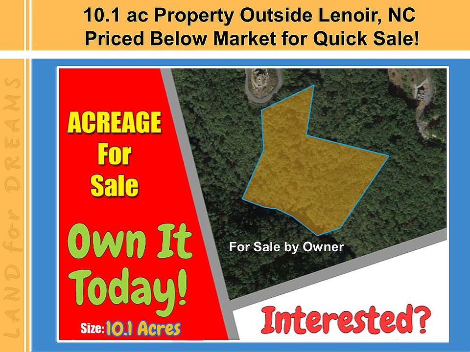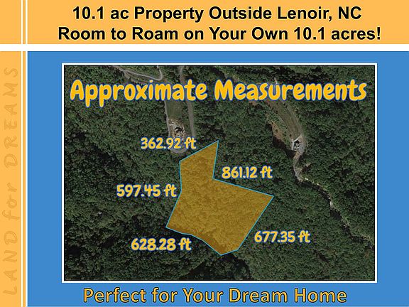 Property by Some of the Best Fishing in North Carolina. Lenoir is a place anyone would be happy to call home. This property is settled 36 miles from beautiful Rhodhiss Lake, which boasts of endless fun activities for the whole family. This fishing wonderland has numerous rivers and ponds to cast away for your catch within an hour drive. It is also only an hour and a half from the South Mountains Game Lands, perfect for avid hunters. Charlotte is less than a two hour drive away, close enough for an exciting weekend getaway! Bowling Rock Country Club only an 18 minute drive and the Grandfather Vineyard & Winery, 42 minutes away are just two examples of the great, local amenities. There is also a wide range of terrific local schools to choose from. Don’t miss out on the opportunity to live in this charming town in the great state of North Carolina. Based on recent sales and offerings in the area, this property is worth $49,000. We offer this property for only $32,500 CASH. That saves $14,700. Property Details - APN: 12 61 13 57 - Property type: Acreage - Zoning: Residential - Agricultural - County: Caldwell - Property Address: 0 Stallion Way - GPS Coordinates (Approximate Center): 36.067762, -81.574037 - City: Lenoir - Zip: 28645 - Acres: 10.1 - Square Feet: 43995.6 - Approximate Dimensions: 362.38 ft x 324.21 ft x 537.42 ft x 558.53 ft x 123.31 ft x 76.24 ft x 205.30 ft x 120.43 ft x 81.28 ft x 150.08 ft x 356.98 ft x 236.10 ft - Topography: Flat / Wooded - Mobile Homes Allowed: Yes - Nearest Cities or Subdivisions: - Mulberry - Patterson - Apple Ridge - Annual Taxes: $310.48 Utilities - Power: Not connected, but available - Water: Well needed - Sewer: Septic needed Local Amenities Local Schools Include: - Happy Valley Elementary PK-8l – 9.5 miles - William Lenoir Middle School – 18.4 miles - Hibriten High School 9-12 – 18.5 Local Grocery Stores: - Food Lion – 16.5 miles - Blowing Rock Market – 16.6 miles - Walmart Neighborhood Market – 20 miles Local Restaurants: - The Latin Twist Café – 14 miles - Bistro Roca – 10 miles - El Rincon – 11.6 miles Local Attractions: - Blowing Rock Art & History Museum – 11.3 miles - Doc’s Rocks Gem Mine – 11.8 miles - Broyhill Park – 11.9 miles READY TO BUY OR HAVE QUESTIONS? Purchasing property from us is simple and easy. We close real estate transactions often and know the process well. We always use a 3rd party Title company to make sure our buyers are protected and ensure the title is free and clear. Message us here or call us today to get started. Disclaimer Buyer is responsible for verifying all information with the County as to what can and can't be done with the property. Buyer will need to work with the County to obtain the proper permits if needed. Buyer will also need to confirm the availability of any utilities needed or serviced on the property. Seller makes no warranties or representations about the land, its condition, or what can be built on the property.
