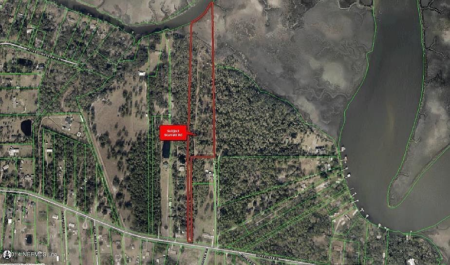Irregularly shaped lot, long and skinny (about 45'wide), then wider (about 360'wide). Approximately 7.4 acres total that includes about 2 acres of marsh at rear of lot. Lender acquired through foreclosure so makes no claims about land. Old survey available but should not be relied on.