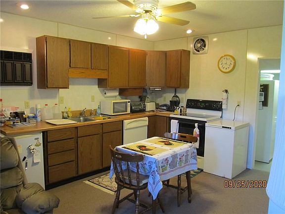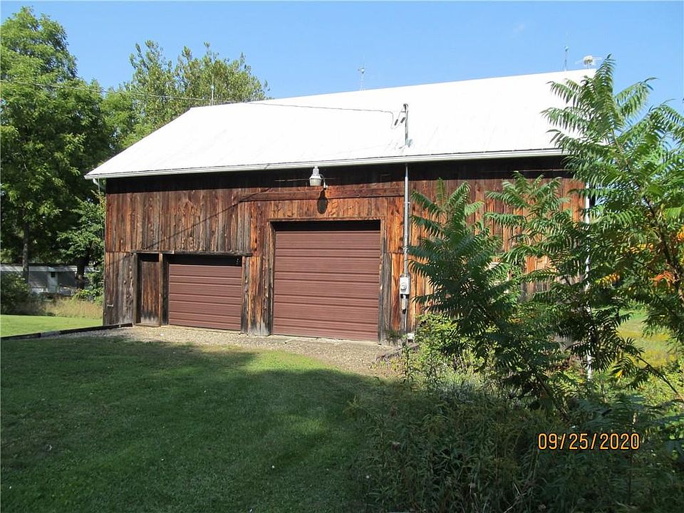 Total of 39 acres with Creek Frontage, Barn with 2 bed/ 2 bath, open floor plan, living room open to deck overlooking creek, lots of storage lower level, garage on the main level with the apartment. 35 Acres across 285 open field, pond, woods, some Timber, OGM rights, and metal structure for cattle.