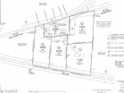 Wonderful lot with road frontage on Golf Course Rd and Hwy 67 for versatility in location of driveway for your new home! Build in Boonville right in the heart of the Yadkin Valley. See plat for new survey. Lot 4 is part of original parcel ID 143673 and has not had individual tax value assigned yet. GIS photo in media shows original parcel.