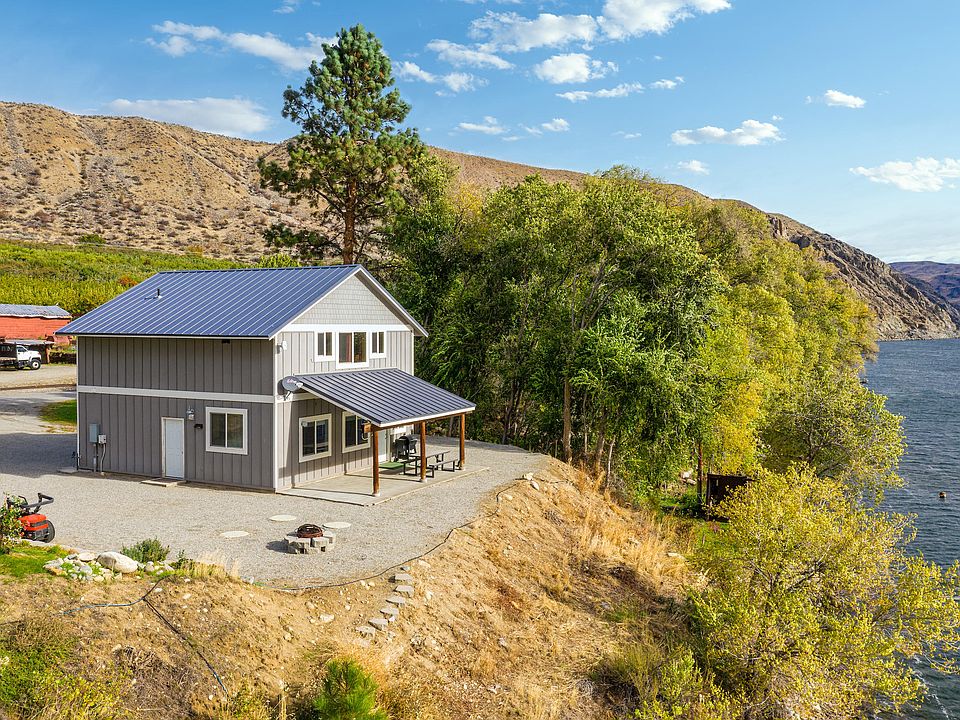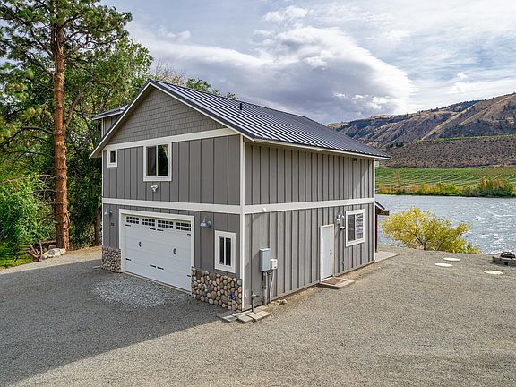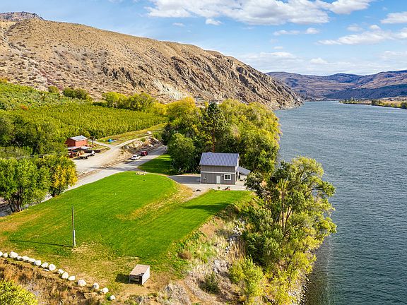 Unique RIVERFRONT RETREAT! Well off the beaten path. NO HOA or CCR's. 1 acre with over 350 ft on the Columbia River. Ready for use with 1 bedroom garage apartment with newly added custom kitchen & 3/4 bath on main level plus plenty of room for extra living area or added sleeping space for guests. Level building site for future home plus 4 bedroom septic already installed.