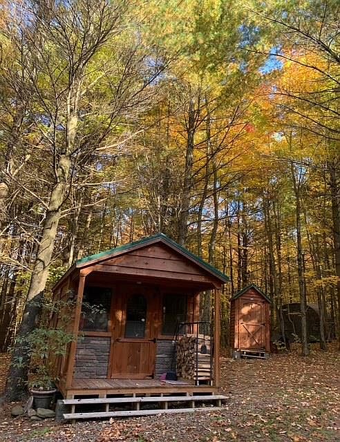 Looking to get away from it all? Here is the perfect place. Located between Seneca and Cayuga Lakes, near Cayuta Lake and 937 acre Texas Hollow State Forest. Mostly wooded with a nice mix of trees. Newer 12x14 cabin tucked back and in, custom built shed, and a dry flush toilet in an adorable outhouse, all with metal roofs. Writers retreat? Hunting get away? Target shooting (several targets on the land)? Outdoor sports? Or a private, peaceful spot to spend time alone or with friends and family around the large fire pit. Beautiful setting.